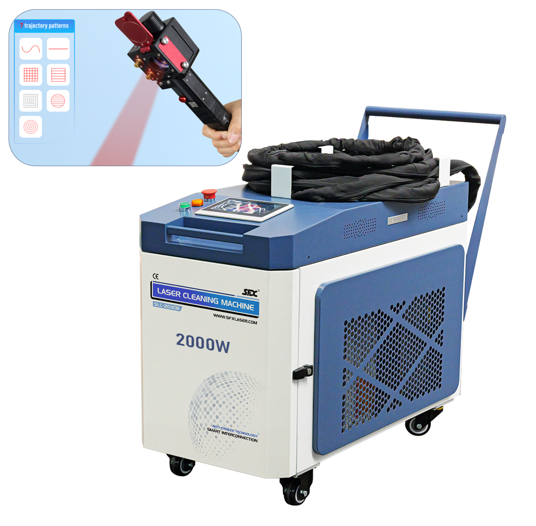 | SLC-2030 | 2000w | ![]() | SFX Laser 2000w CW Laser cleaning machine. 10m/20m cable line are optional. Click for More Details | Large area metal rust and paint removal. Rust and paint removal of large machinery. Rust removal of steel plates. Rust and paint removal of trailers and trucks. Auto repair. Boat rust removal, etc. |